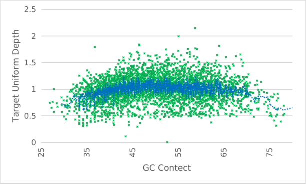 案例(以NA12878樣本為模板進(jìn)行建庫,均一化深度后,不同GC含量區域具有良好均一) | ||||