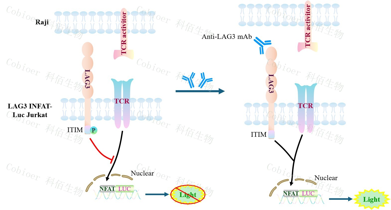 Figure 1: LAG3 NFAT-Luc Jurkat 細胞模型原理圖