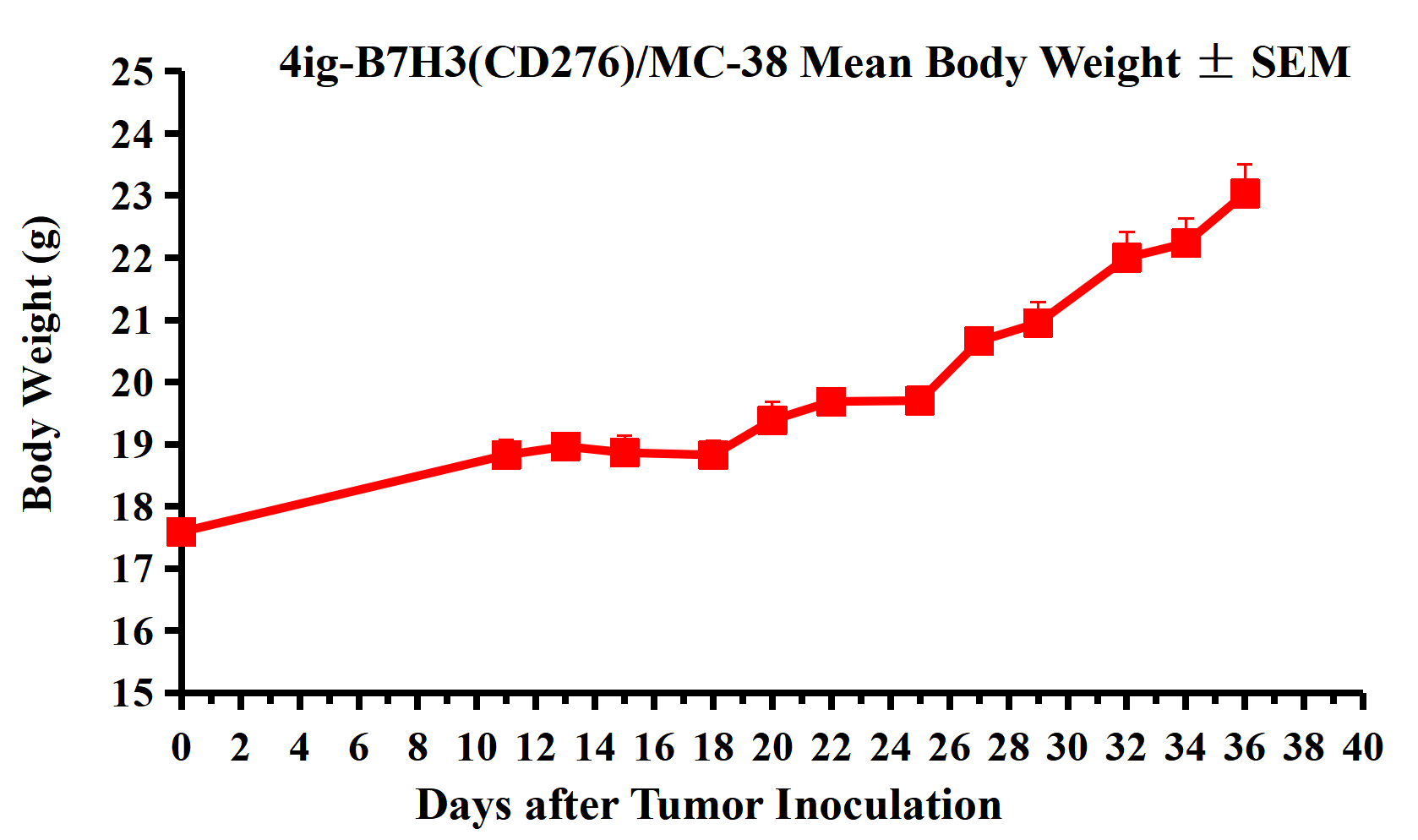 4ig-B7H3(CD276)/MC-38 Mean Body Weight ± SEM.