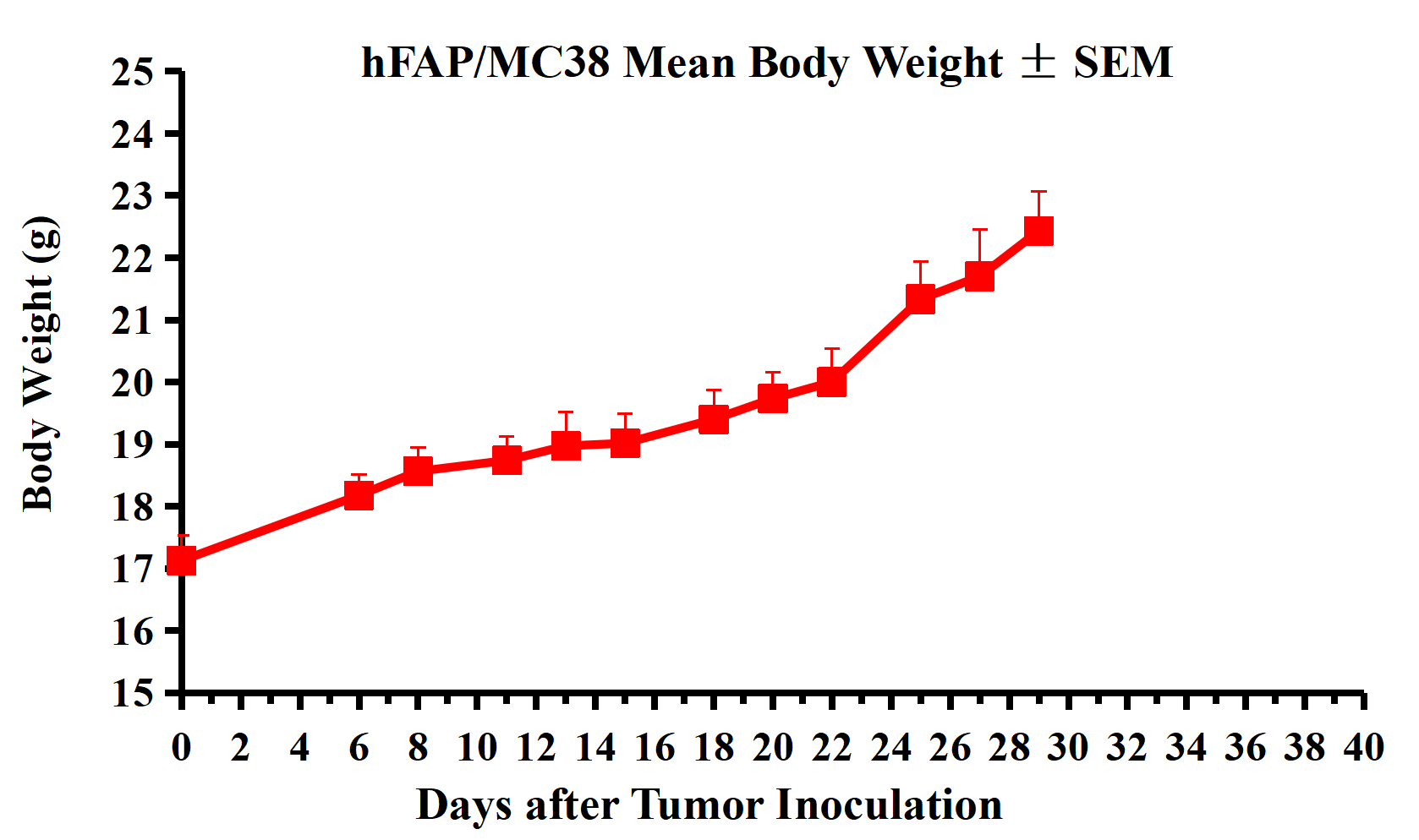 hFAP/MC38 Mean Body Weight ± SEM.