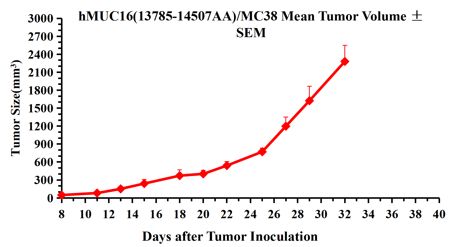 Figure 3. hMUC16(13785-14507AA)/MC38 Mean Tumor Volume ± SEM .