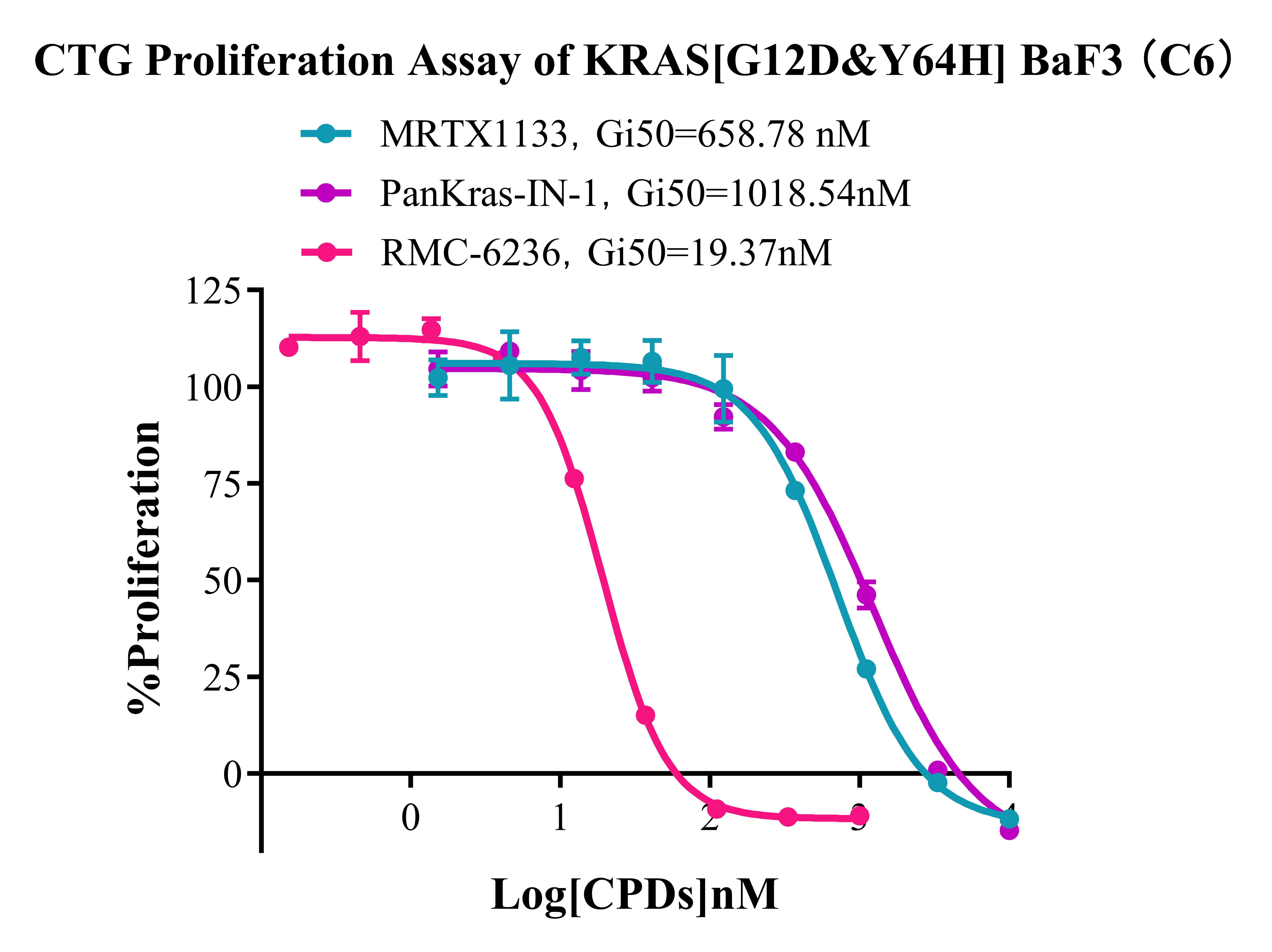 Figure 4. CTG Proliferation Assay of KRAS[G12D&Y64H] BaF3 (C6).