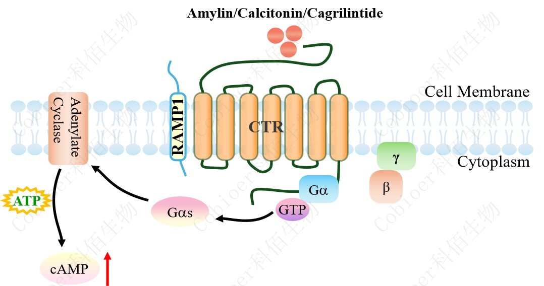 降鈣素基因相關(guān)肽(CGRP)家族包括 CGRP 本身、降鈣素(CT)、腎上腺髓質(zhì)素 (AM)和胰島淀粉樣肽(AMY)。 胰淀素(Amylin)受體的三種類(lèi)型的已被確定,即 AMY1,AMY2 和 AMY3。 |