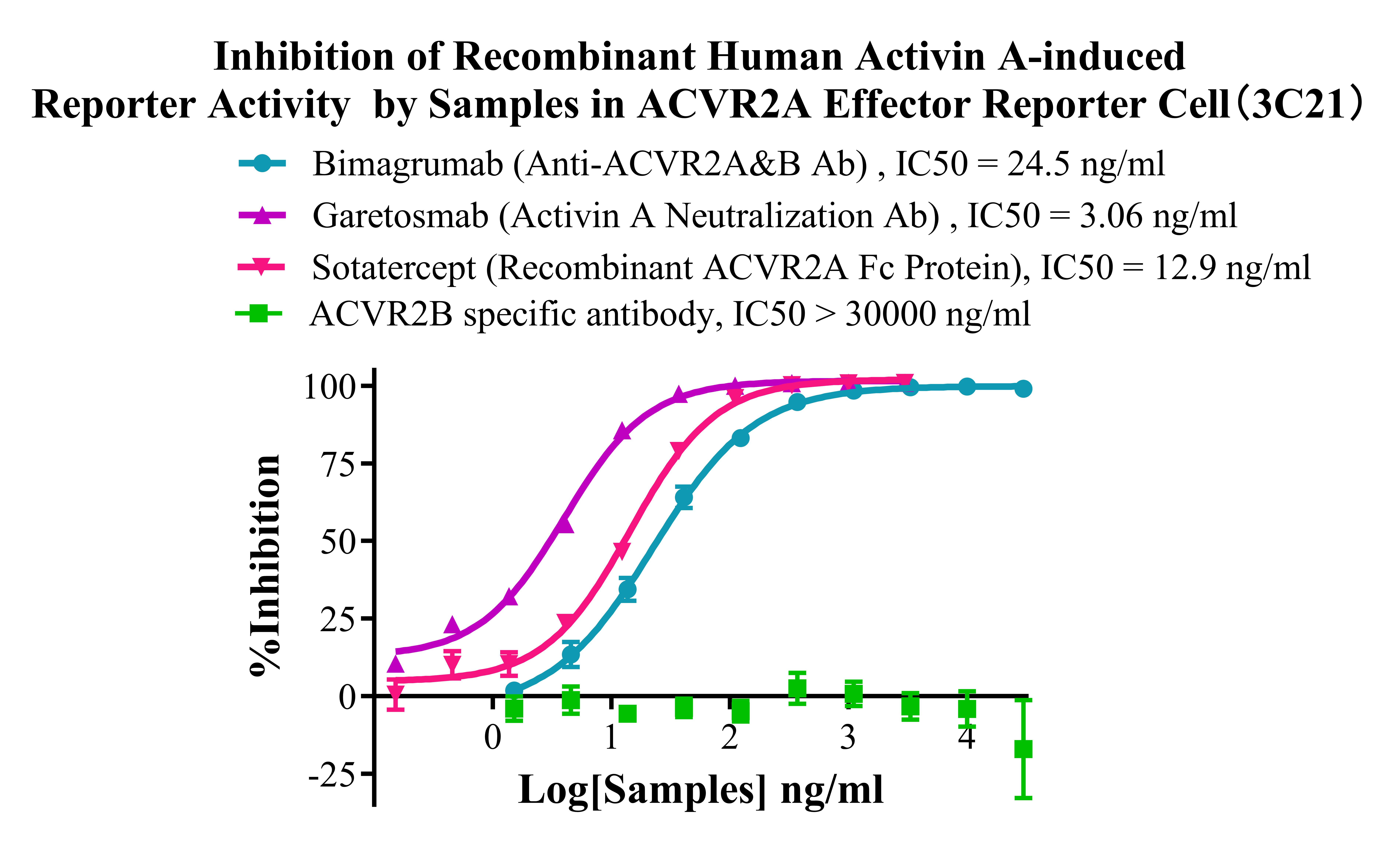 Figure 5. Inhibition of Recombinant Human Activin A-induced Reporter Activity by Samples in ACVR2A Effector Reporter Cell (3C21).
