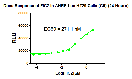 Figure 1. Dose Response of FICZ in AHRE-Luc HT29 Cells (C5)(6 Hours).