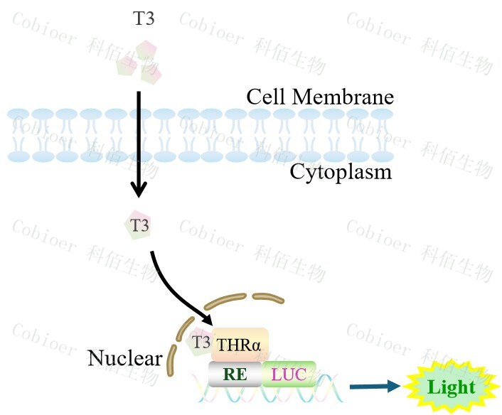 Figure 1. THRA Luciferase Reporter HEK293 原理示意圖