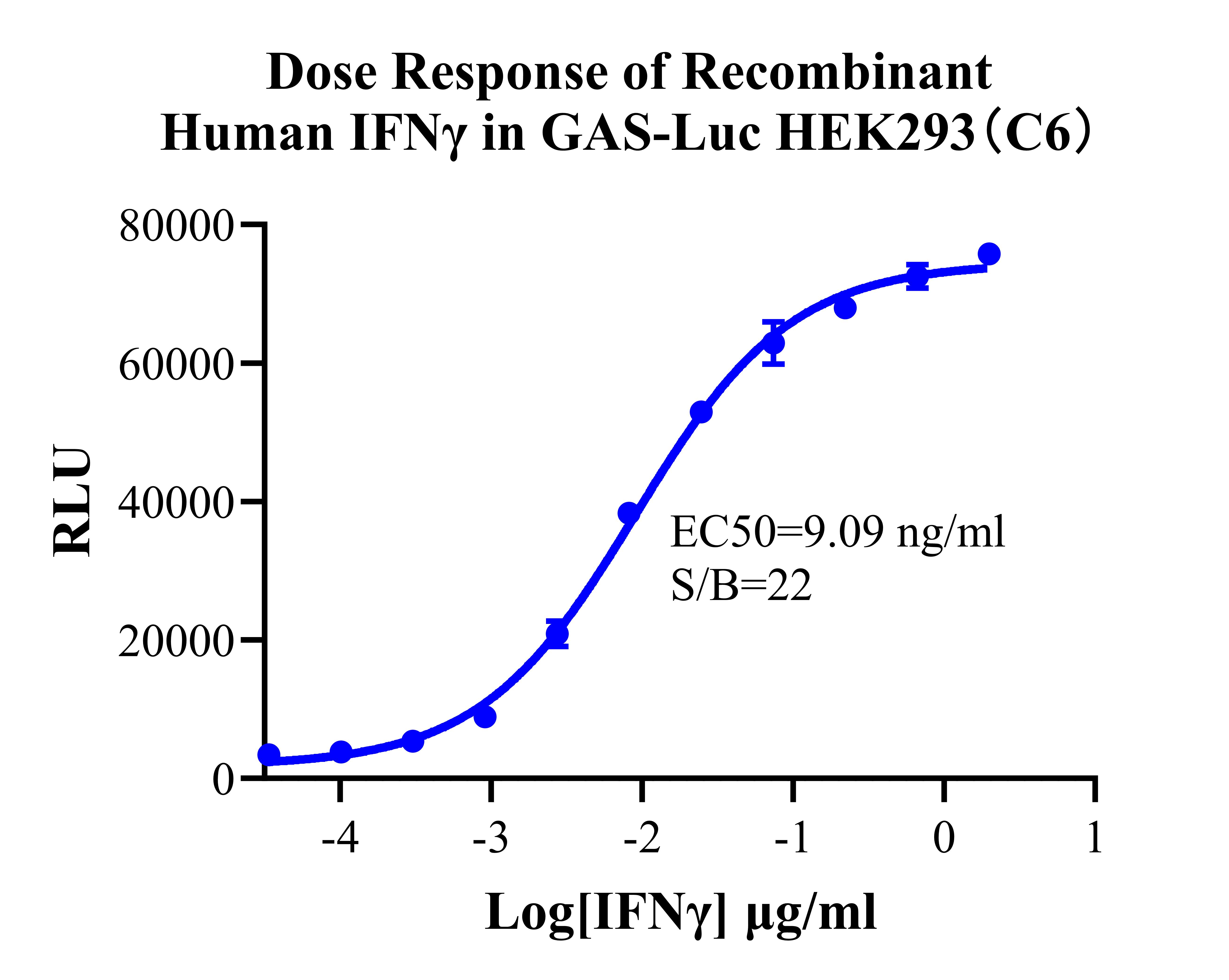 GAS-Luc HEK293 報告基因細胞,是由 GAS 調控并表達 Luc 熒光素酶 報告基因的 HEK293 細胞。IFNγ與受體結合,激活 GAS 的原理見(jiàn)下圖所示。