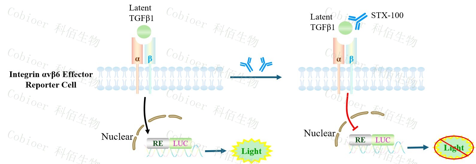Figure 1. Integrin αvβ6 Effector Reporter Cell 細胞模型原理圖