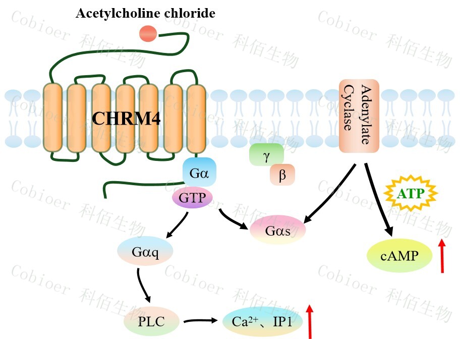 毒蕈堿乙酰膽堿受體(MAChRs,簡(jiǎn)稱(chēng) M 受體)參與中樞神經(jīng)系統的運動(dòng)控制、體溫 調節、心血管調節和記憶,介導周?chē)窠?jīng)系統的平滑肌收縮、腺體分泌和心率、調節心肌 收縮力。CHRM4 作為 Gi/o 偶聯(lián)型毒蕈堿受體,中樞神經(jīng)系統高表達,其內源性配體乙酰 膽堿(ACh)激活后優(yōu)先通過(guò) Gi/oα亞基抑制腺苷酸環(huán)化酶,同時(shí)釋放 Gβγ二聚體。 | |