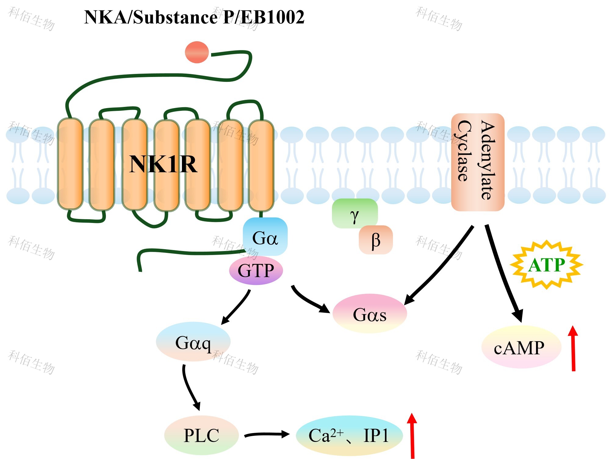 速激肽(Tachykinins )是分布在哺乳動物中樞和周圍神經(jīng)系統(tǒng)中的一類神經(jīng)肽。速激 肽物質(zhì) P(SP)、神經(jīng)激肽 A(NKA)和神經(jīng)激肽 B(NKB)共享一個保守的 C 端基序, 對速激肽受體(NK1R、NK2R 和 NK3R)的激活至關(guān)重要。NKA 優(yōu)先激活與 Gα偶聯(lián)的 NK2R,而 SP 和 NKB 分別優(yōu)先結(jié)合 NK1R 和 NK3R。三種速激肽都能夠在所有速激肽受 體類型中表現(xiàn)為完全激動劑。 NK1R(Neurokinin 1 Receptor),又稱 TACR1,是速激肽受體家族的核心成員,其內(nèi) 源性配體為 P 物質(zhì)(Substance P)。 |
