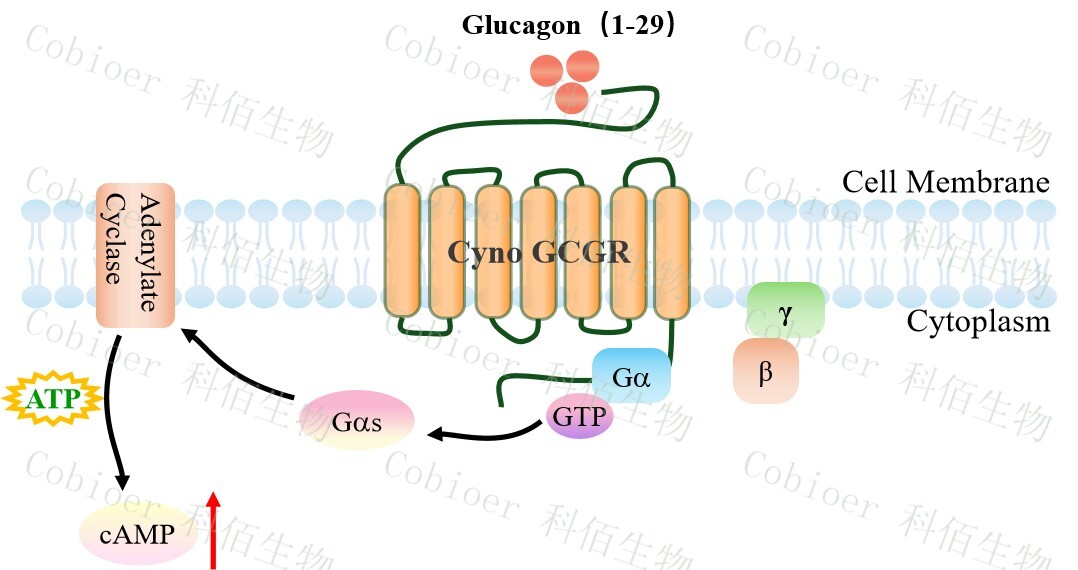 Cyno GCGR CHO 藥靶模型很好的模擬了體內 GCGR 的信號轉導過(guò)程,原理見(jiàn)下圖所示。