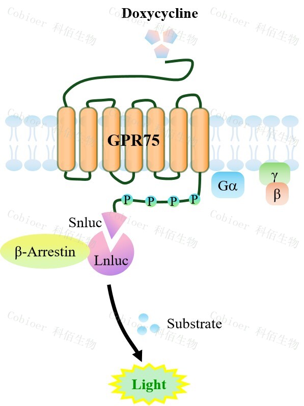 Inducible GPR75 β-Arrestin CHO 報(bào)告基因藥靶模型很好的模擬了體內(nèi) GPR75/β-Arrestin 的信號(hào)轉(zhuǎn)導(dǎo)過程,原理見下圖所示。![]() Figure 1. Inducible GPR75 β-Arrestin CHO 細(xì)胞模型原理圖 |