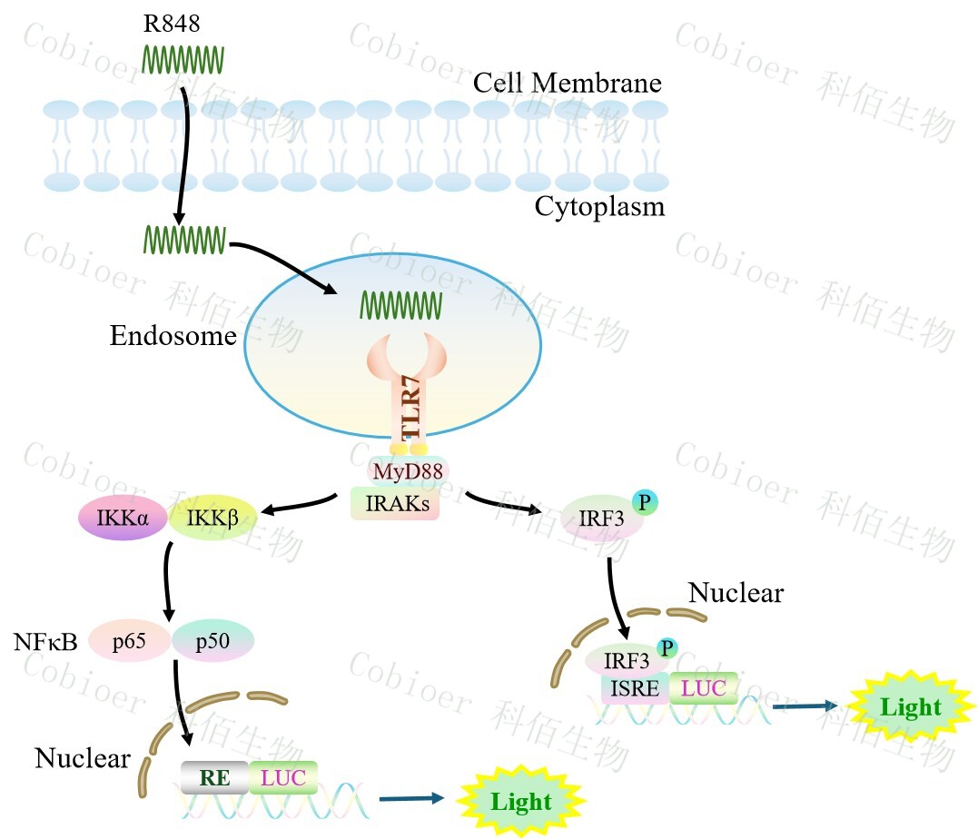 TLR7 NFκB&ISRE Dual Reporter Cell 細胞模型原理圖