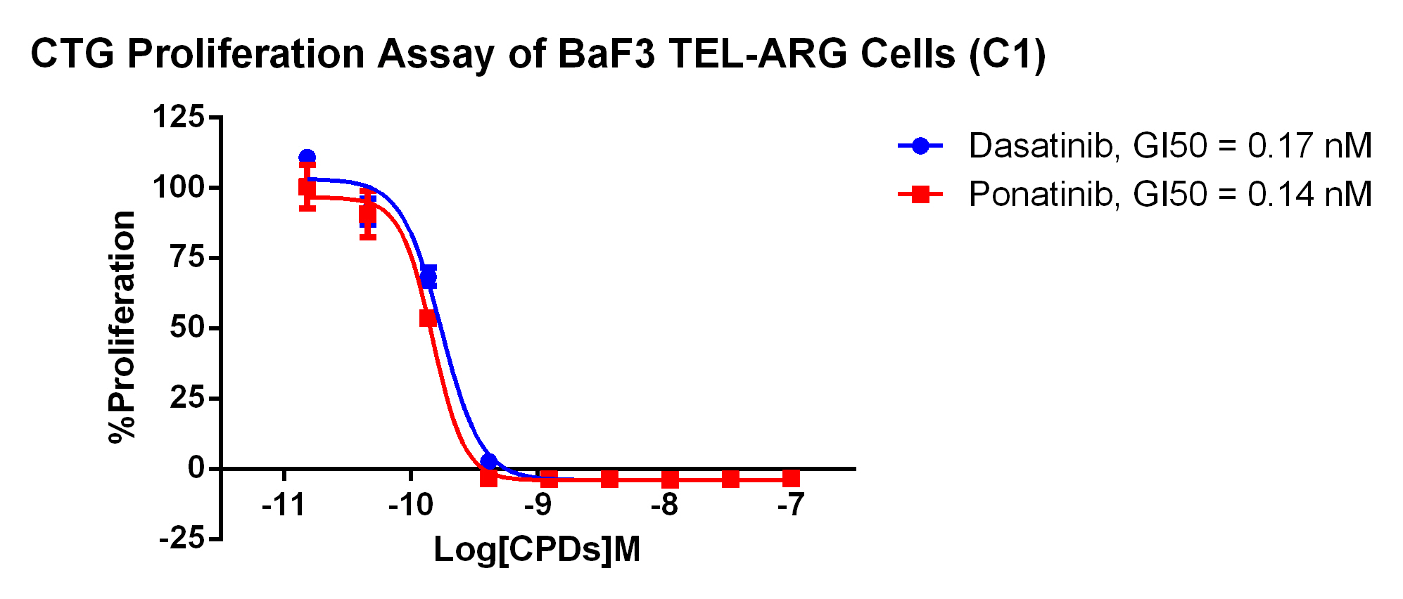 Figure 1. CTG Proliferation Assay of BaF3 TEL-ARG Cells (C1).