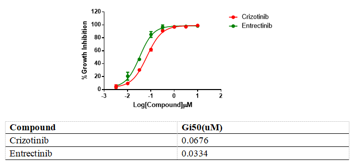 Figure 3. Anti-proliferation assay of two reference compounds on the SLC34A2-ROS1/BaF3 Stable Cell Line.