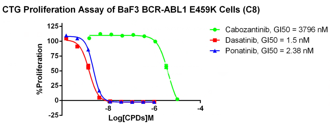 Figure 4. CTG Proliferation Assay of BaF3 BCR-ABL1 E459K Cells (C8).