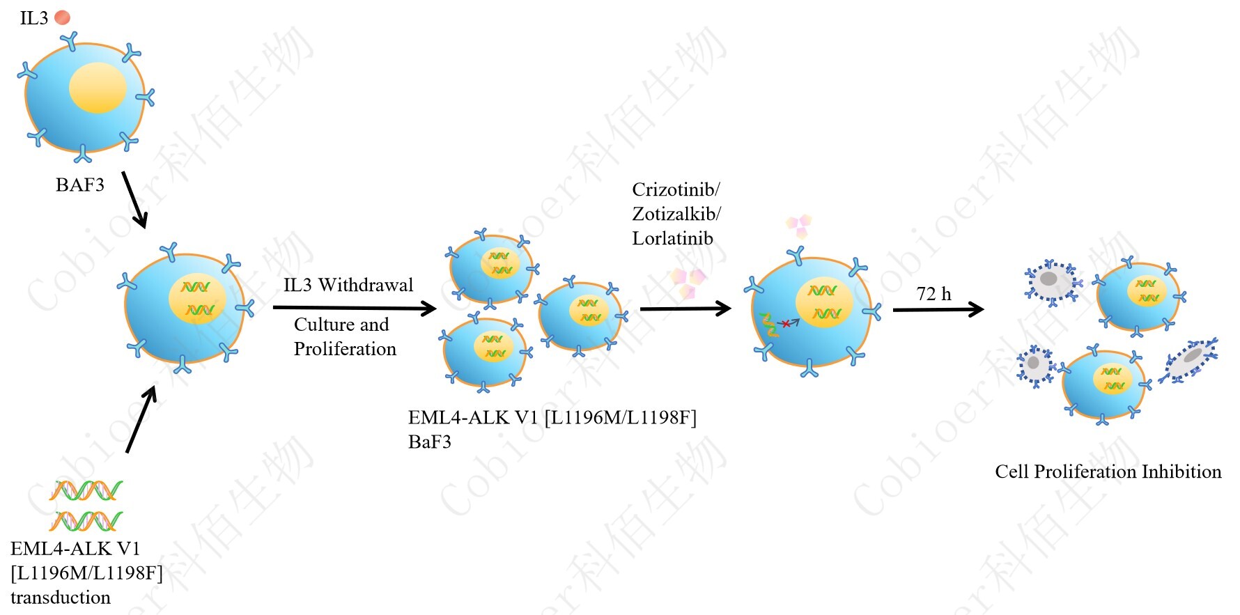 Figure 1. EML4-ALK V1 [L1196M/L1198F] BaF3 細胞的構建原理圖