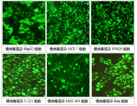 廣泛的宿主,可感染分裂和不分裂的細胞,幾乎可以感染所有類(lèi)型的細胞,特別適合質(zhì)粒載體轉染效率低的細胞;