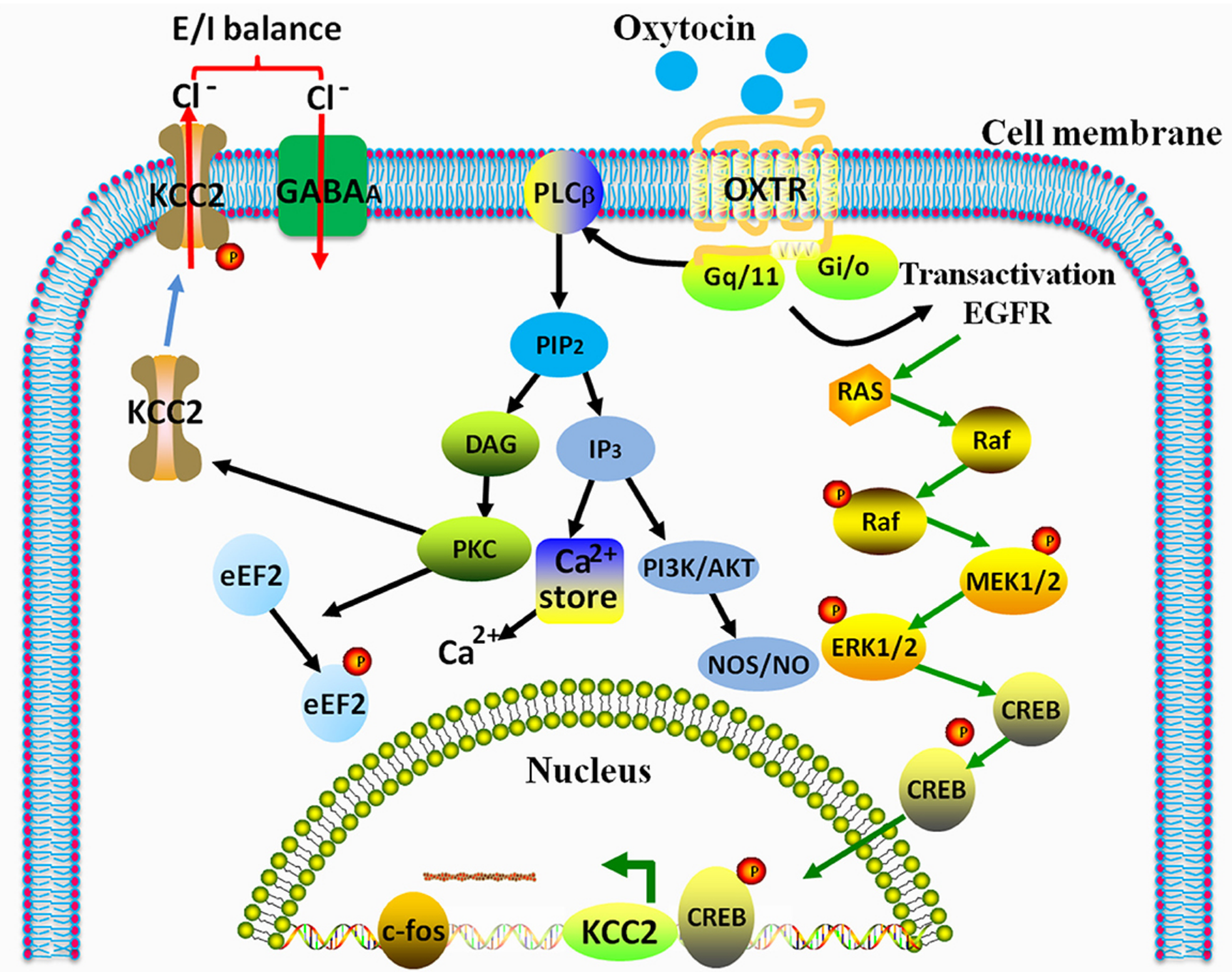 催產(chǎn)素(OXT)是大腦中由下丘腦室旁核(PVN)和視上核(SON)產(chǎn)生的神經(jīng)肽,主要作為外周系統中的激素,可促進(jìn)母乳喂養時(shí)的乳汁分泌,調節分娩時(shí)的子宮收縮,緩解疼痛和促進(jìn)分娩過(guò)程,促進(jìn)傷口愈合。此外,中樞神經(jīng)系統(CNS)中的 OXT 系統在社會(huì )認可、社交行為、焦慮相關(guān)行為和自主神經(jīng)功能中起著(zhù)重要作用,例如母體行為、攻擊性、交配、依戀和性行為。除了促社會(huì )效應外,OXT 還被確定為大腦中重要的抗應激和抗焦慮因子,通過(guò)其靶受體(催產(chǎn)素受體,OXTR)激活細胞內 MEK/ERK 信號傳導。
