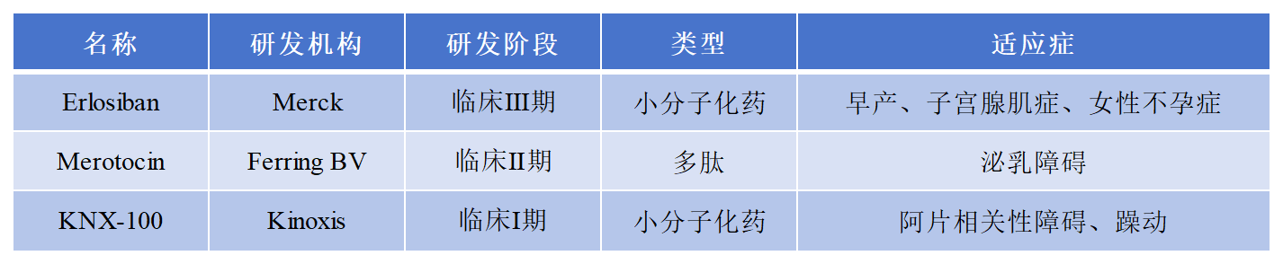 目前,針對OXT/OXTR靶點(diǎn)的藥物布局較少,藥物布局如下: