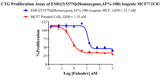 Figure 8. CTG Proliferation Assay of ESR1[Y537N(Homozygous,AF%:100) Isogenie MCF7(1C8).