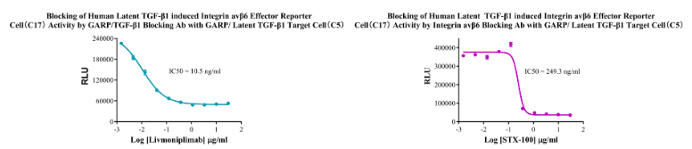 為助力GARP/LTGF-β 靶點藥物研發(fā),南京科佰開發(fā)了GARP/Latent TGF-β1 Target Cell、GARP/Latent TGF-β1 CHO細胞篩選模型,產(chǎn)品驗證結(jié)果如下: