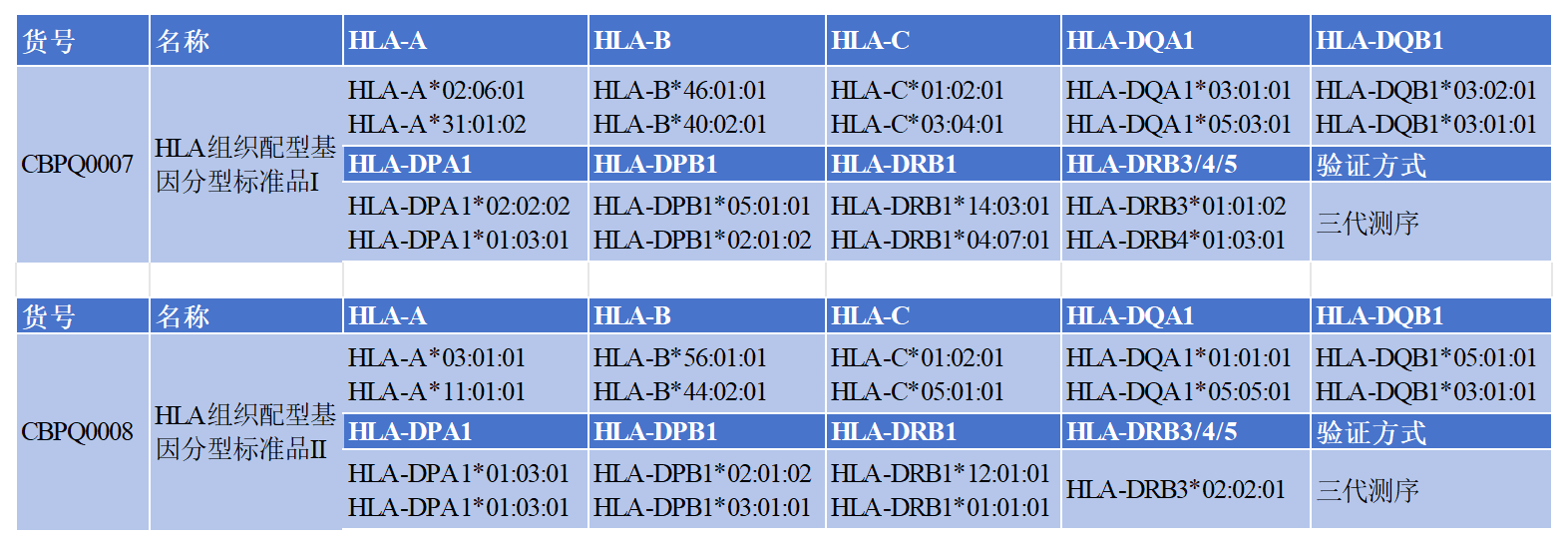 人類(lèi)白細胞抗原HLA基因分型標準品